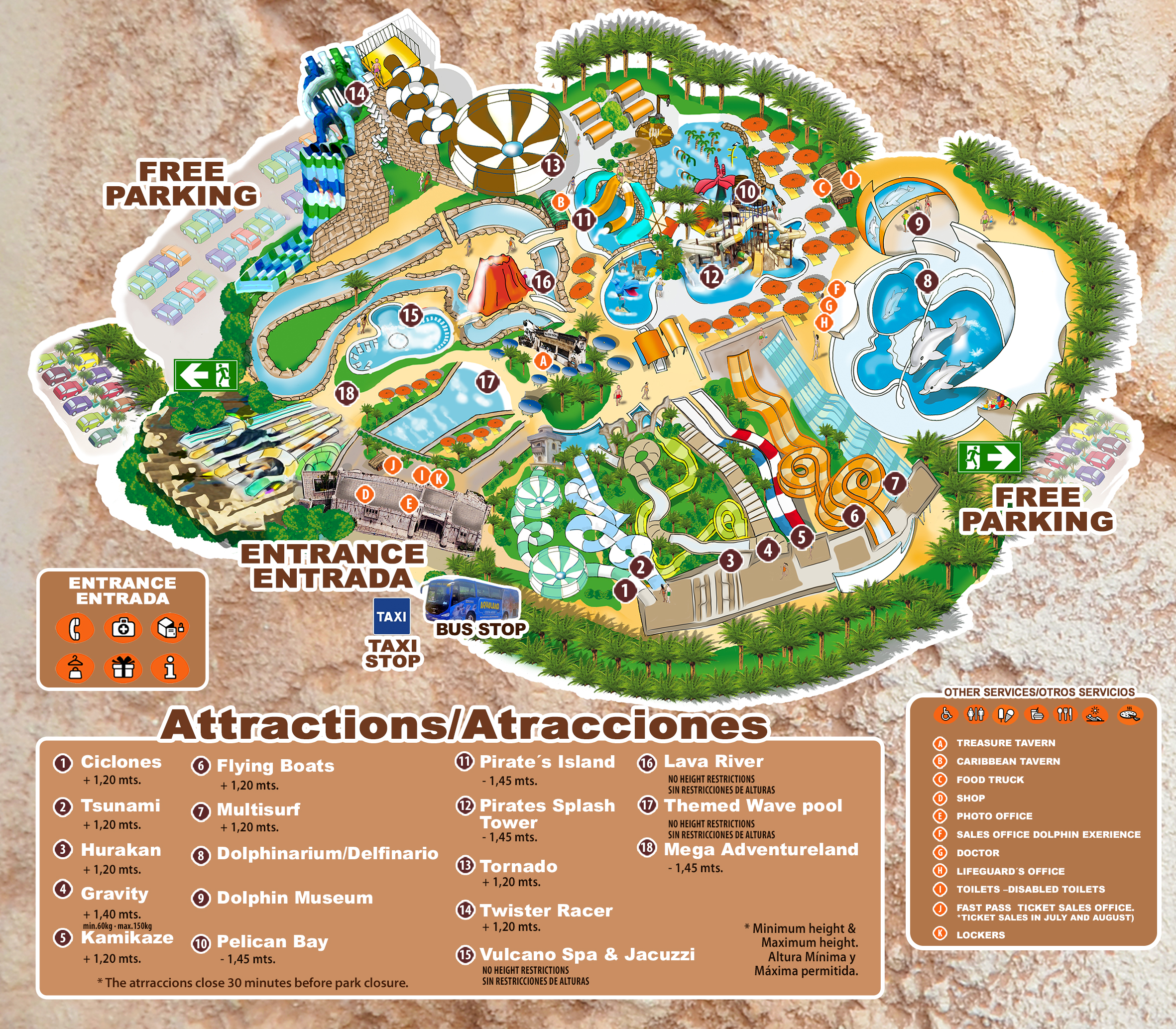 Las atracciones acuáticas se cierran 30 minutos antes del cierre del parque.